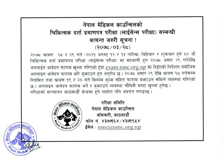 MBBS र BDS पुनः परीक्षा सम्वन्धी सूचना ।