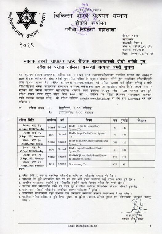 MBBS र BDS पुनः परीक्षा सम्वन्धी सूचना ।